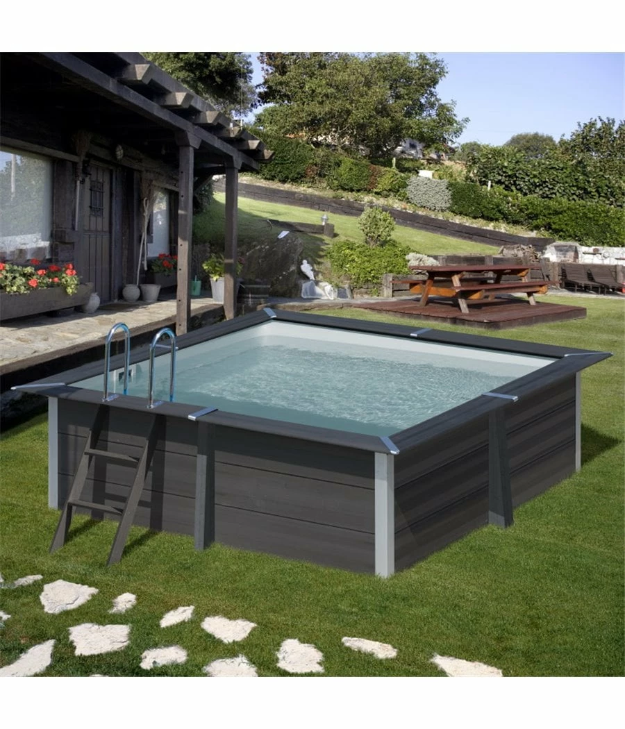 La gamme de piscines en composite GRE a un style avant-gardiste pas uniquement parce qu’elle est disponible sous différentes formes (octogonale, octogonale allongée, carrée, rectangle) mais surtout par la composition des matériaux de la structure de la piscine : un alliage de bois et de PVC.