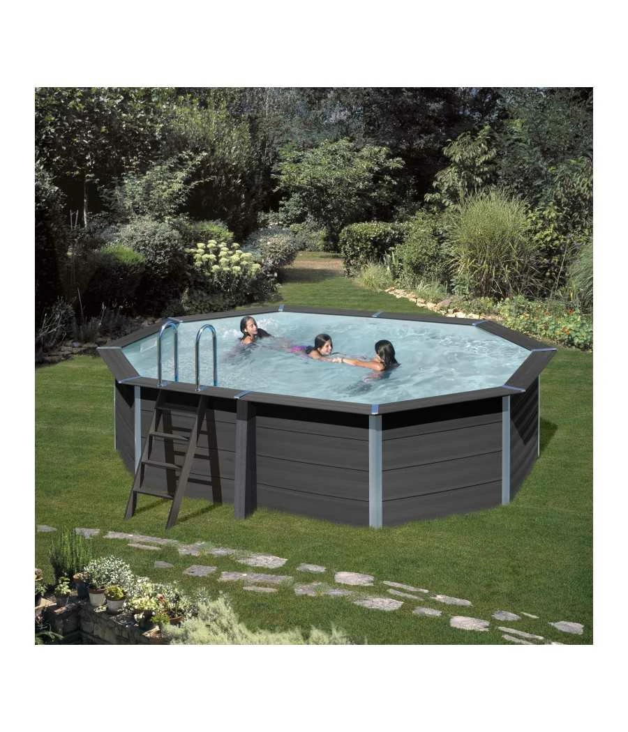 La gamme de piscines en composite GRE a un style avant-gardiste pas uniquement parce qu’elle est disponible sous différentes formes (octogonale, octogonale allongée, carrée, rectangle) mais surtout par la composition des matériaux de la structure de la piscine : un alliage de bois et de PVC.